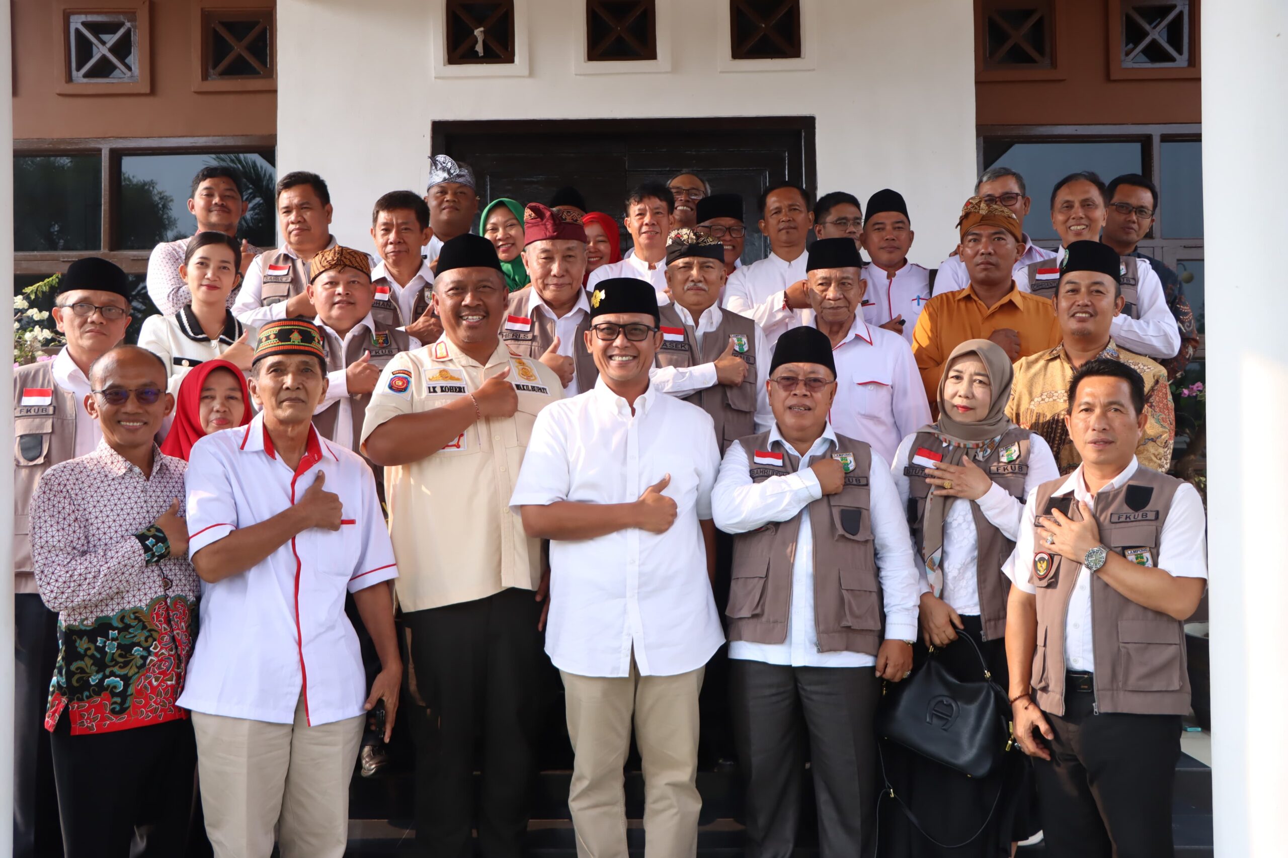 adipatiline.id, Gunung Sugih – Bupati Lampung Tengah Ardito Wijaya bersama Wakil Bupati I Komang Koheri menerima kunjungan jajaran Forum Kerukunan Umat Beragama (FKUB) Provinsi Lampung, bertempat di Nuwo Balak, Gunung Sugih, Kamis (9/10/2025).