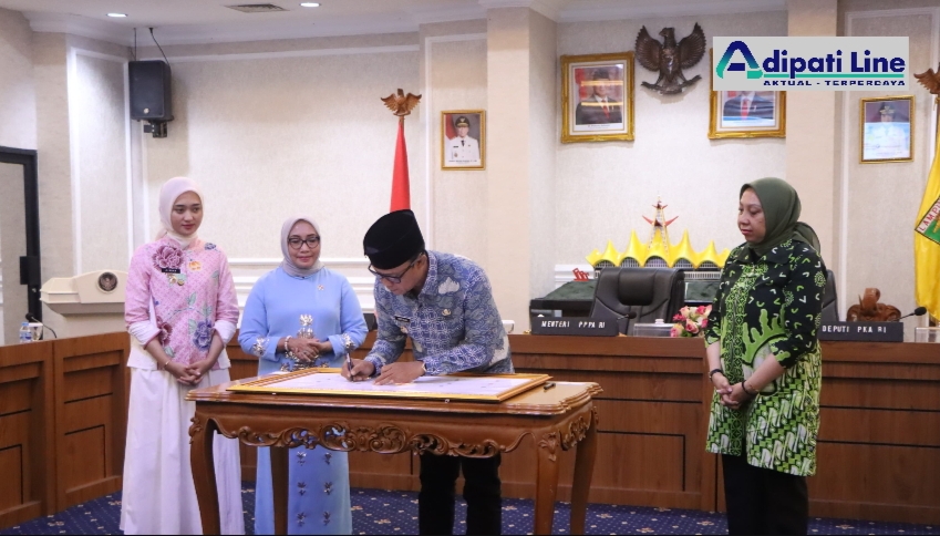 adipatiline.id, Lampung Tengah – Bupati Lampung Tengah, Ardito Wijaya, menghadiri acara Penandatanganan Komitmen Bersama Bupati/Walikota se-Provinsi Lampung yang digelar di Ruang Rapat Utama Kantor Gubernur Lampung, Sabtu (27/9/2025). Kegiatan ini merupakan rangkaian dari kunjungan kerja Menteri Pemberdayaan Perempuan dan Perlindungan Anak Republik Indonesia, Arifah Fauzi.