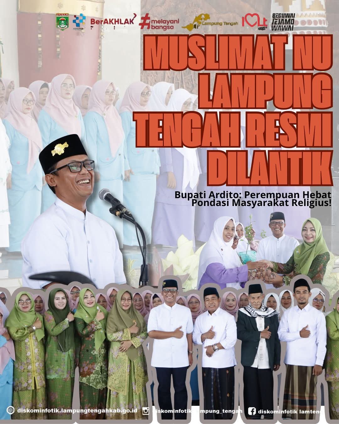 adipatilinw.id, Lampung Tengah – Bupati Lampung Tengah, dr. Hi. Ardito Wijaya, menghadiri Pelantikan Lembaga Perangkat Muslimat Nahdlatul Ulama (NU) sekaligus Launching Program Muslimat NU, yang berlangsung di Gedung Sesat Agung Nuwo Balak, Minggu (26/10/2025).