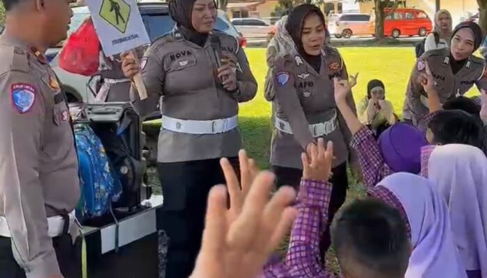 Didampingi para guru dan orang tua, anak-anak disambut hangat oleh jajaran Sat Lantas Polres Lampung Tengah.