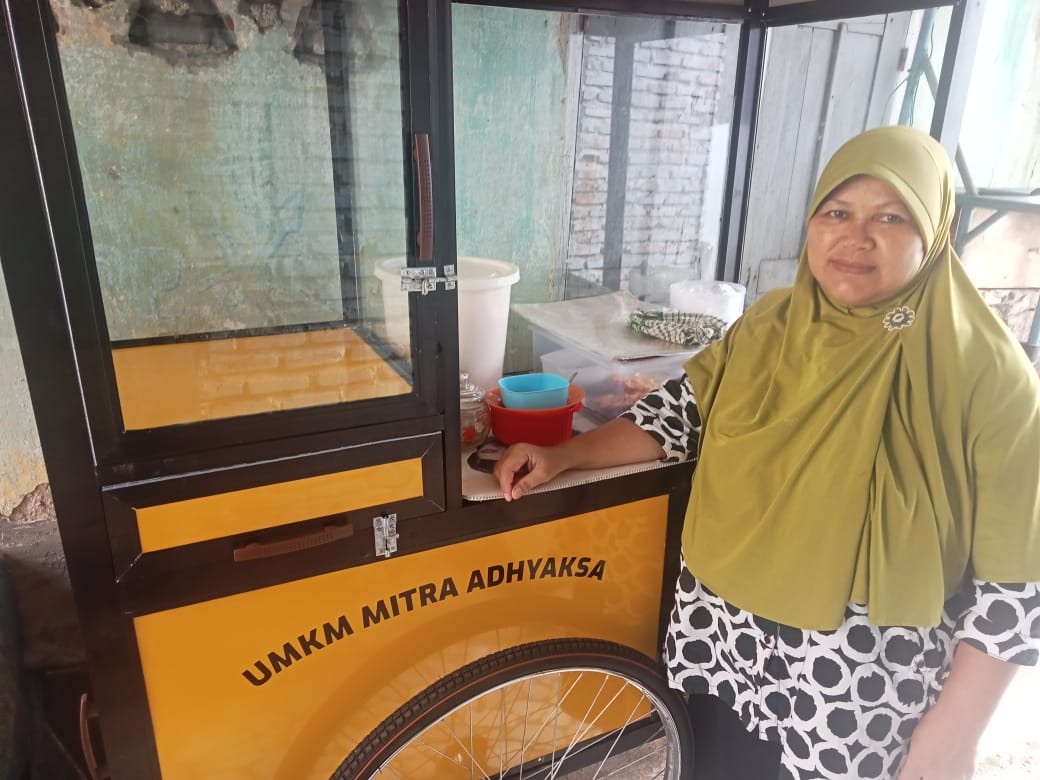 adipatiline.id, Bandar Lampung (LB): Kebahagiaan terpancar dari wajah Marni, warga Kelurahan Gotong Royong, Bandar Lampung. Pedagang nasi uduk ini menerima hadiah berupa grobak dorong dari program UMKM Mitra Adhyaksa, Jumat (31/10/2025).
